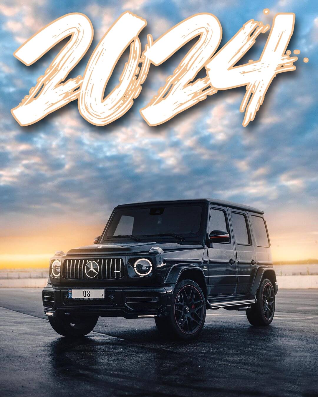 Happy New Year 2024 Photo Editing background with car